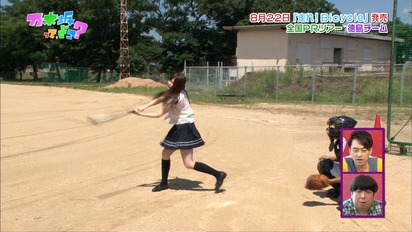 白石麻衣はボトルキャップ野球でフルスイングを披露。