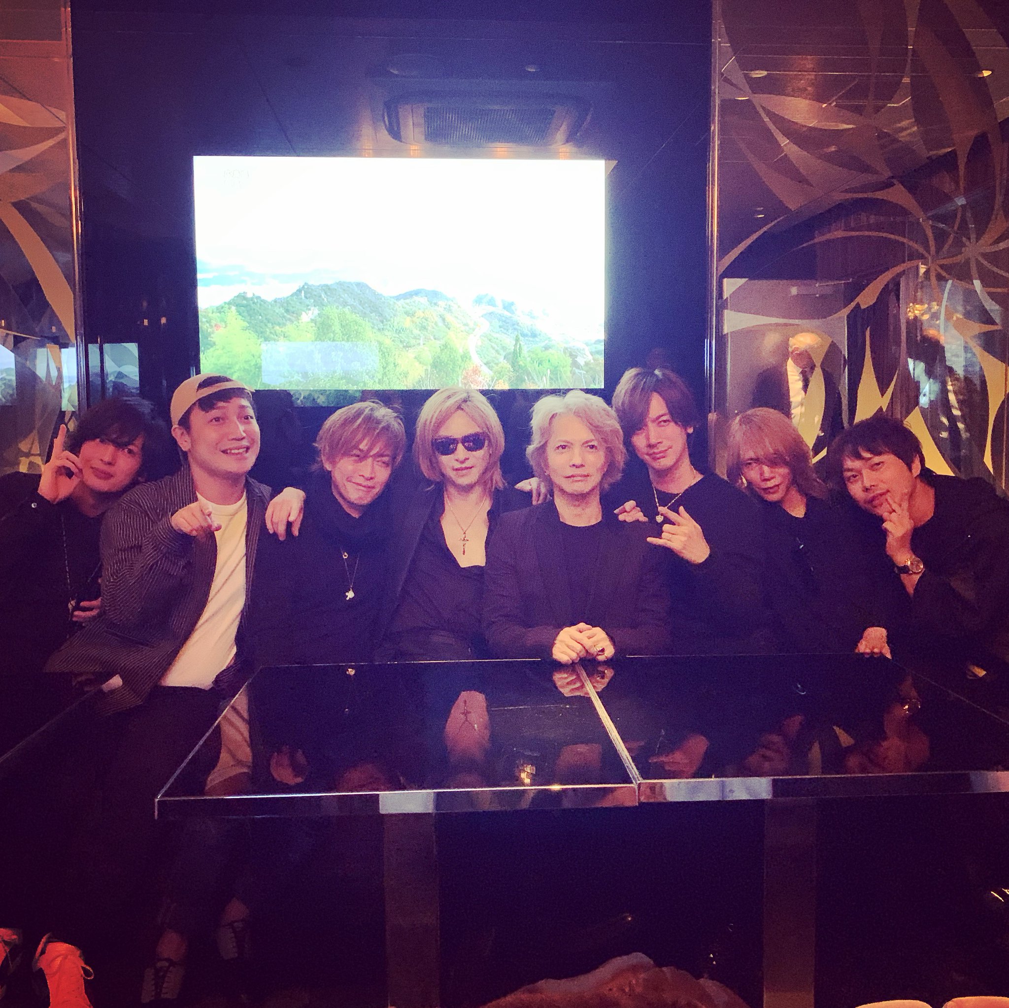 HYDEの両サイドにはYOSHIKIとDAIGOが座っており、さらに「DIR EN GREY」のShinya(40)や「LUNA SEA」のINORAN(48)らの顔も。