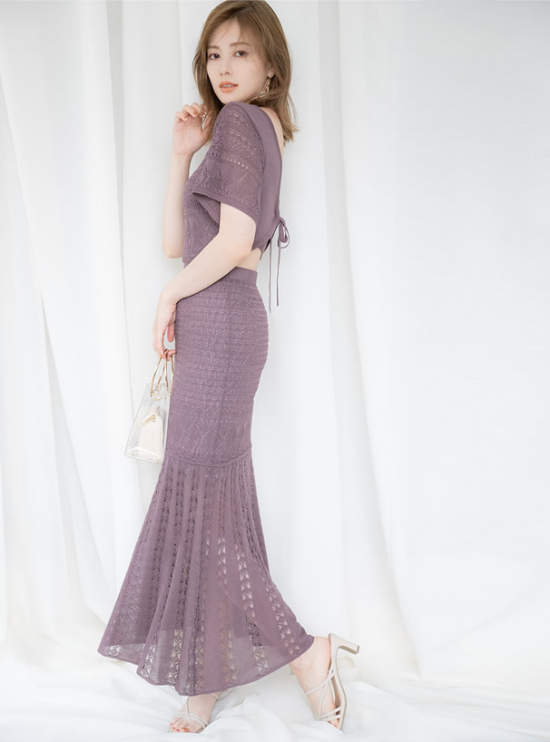 白石麻衣 バック開き透かし編みマーメイドシルエットニットワンピース[rut501] | レディースファッション通販のグレイル(GRL)【公式】