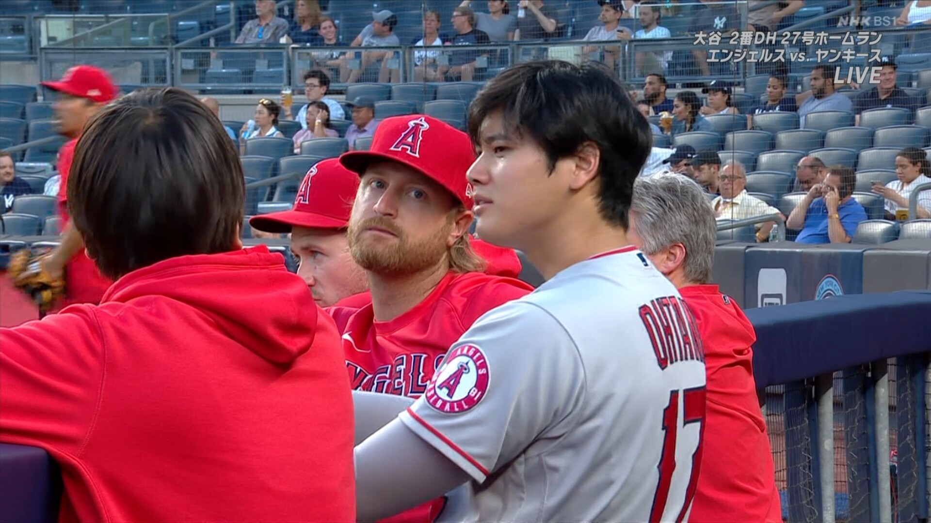 打撃好調をキープし、30日(日本時間7月1日)にはヤンキースを相手に敵地で今季12度目の先発が予定されている。前日の試合前練習では壁当てとキャッチボールを行い、順調に調整。左翼フィールドで練習する大谷を一目見ようと、三塁側スタンドには人だかりができていた。